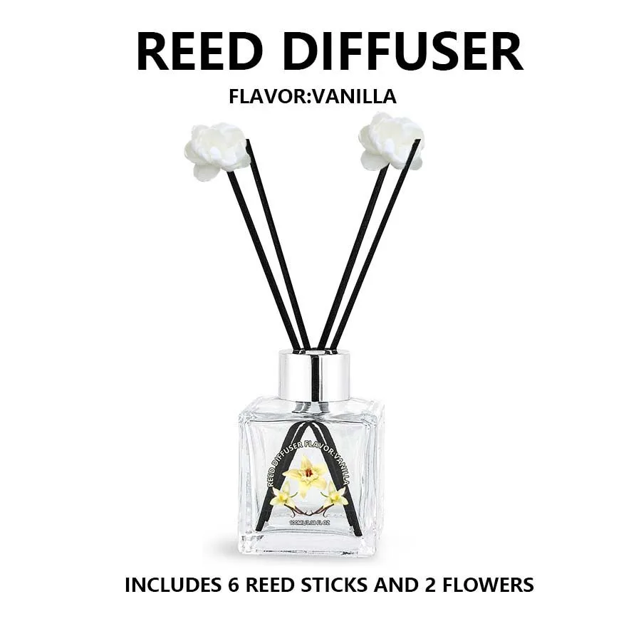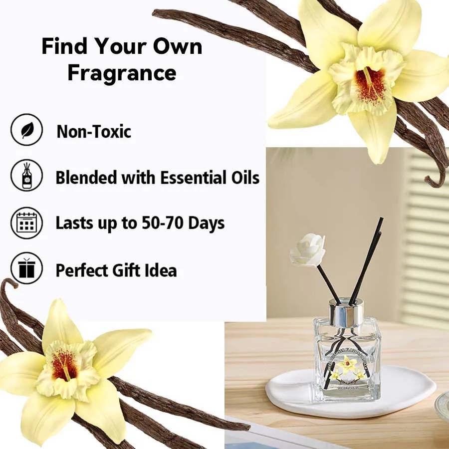 Flower Reed Diffuser-Vanilla Scent 3.38oz Scented Diffuser with Sticks Home Fragrance Essential Oil for Bathroom Shelf Decor