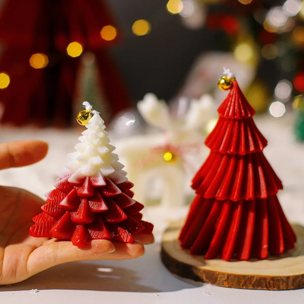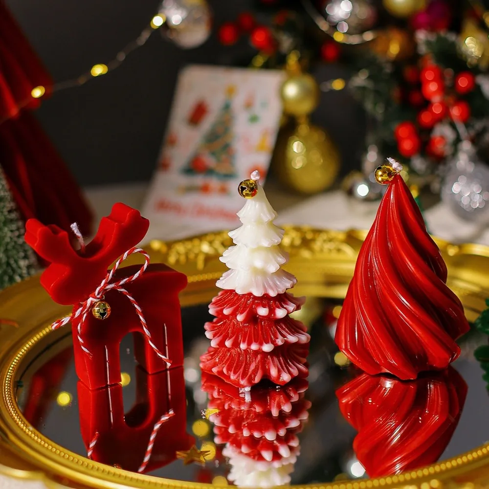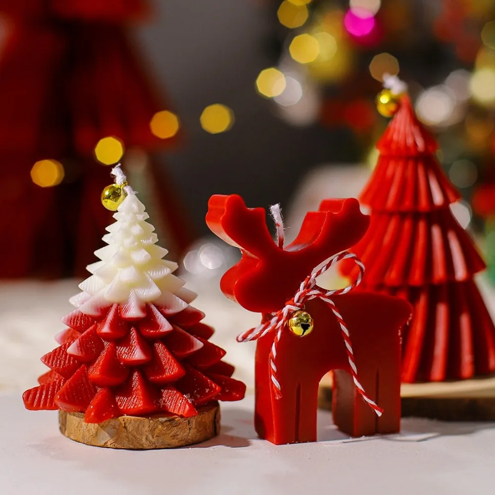 Pine Deer Scent Candle Silicone Mold Handmade Plant Animal Gypsum Resin Mold DIY Taper Stripe Tree Christmas Decoration for Home